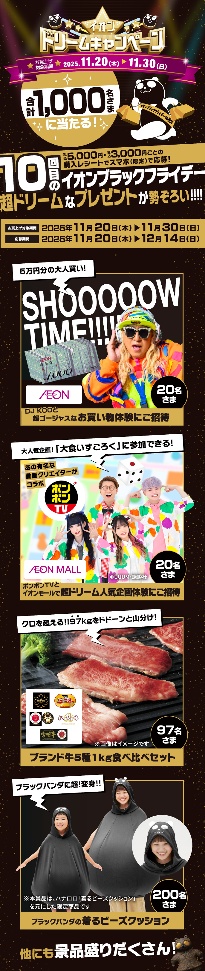 期間中、対象イオンモールの専門店限定でイオンマークのカード払い(電子マネーWAONは除く)ご利用でWAON POINTが10倍になります!AEON Payのスマホ決済は、11倍になります!